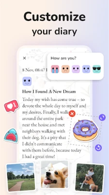 Pretvorite svoj dnevnik u živopisnu riznicu uspomena uz mogućnost dodavanja fotografija, čineći ga istinskim vizuelnim zapisom vašeg života. Kalendar unutar aplikacije omogućava vam da se vratite na značajne datume, ponovo proživite posebne trenutke ili organizujete predstojeće obaveze, pretvarajući ga u sveobuhvatnog planera. Nezaobilazan alat je i praćenje raspoloženja: svakodnevnim beleženjem emocija otkrijte obrasce i dublje razumite šta pokreće vašu sreću ili tugu, čime doprinosite boljem poznavanju sebe.