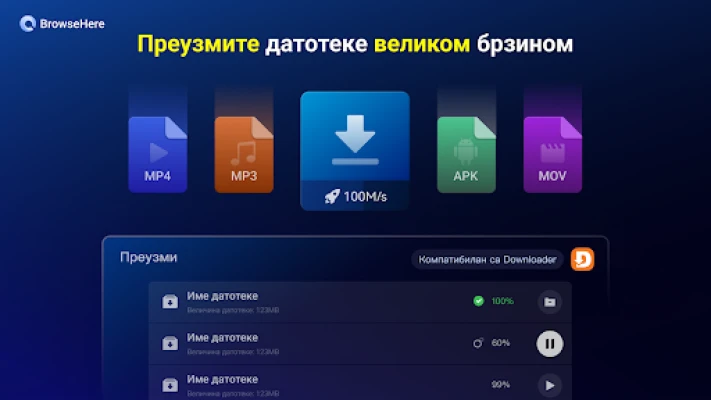 BrowseHere ide i korak dalje. Integrisani plejer omogućava vam da pratite TV kanale uživo od vašeg IPTV provajdera – jednostavno dodajte svoju listu kanala i prepustite se zabavi (napomena: BrowseHere ne obezbeđuje TV izvore). Recite zbogom dosadnim reklamama zahvaljujući ugrađenom Ad Blockeru koji automatski zaustavlja iskačuće prozore, video i baner oglase, obezbeđujući neprekidno uživanje. S lakoćom možete upravljati preuzimanjem datoteka svih formata, od APK-ova do video zapisa i slika, direktno sa interneta, uz robustne bezbednosne provere koje garantuju sigurnost.